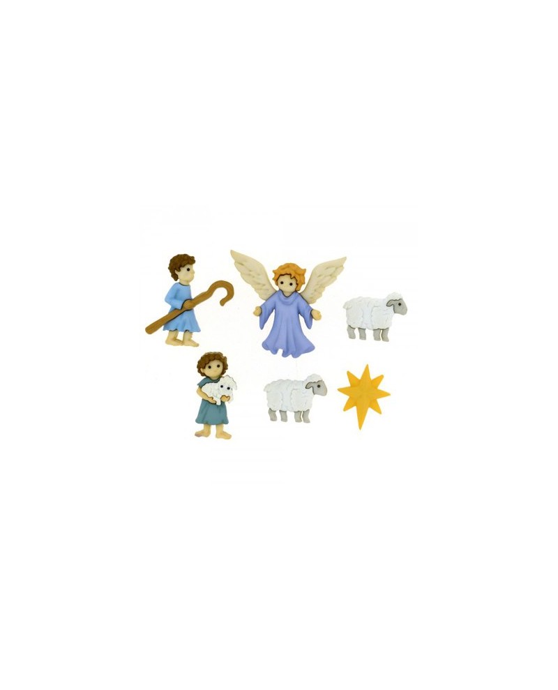 6 Botones decorativos de los pastorcitos, ovejas y estrella...