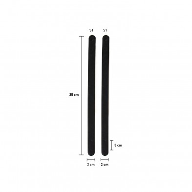 Par de asas cortas de piel sintética de 2 x 35 cm de largo. Perfectas para bolsos de mano o tote bags pequeñas hechas a mano. Cuentan con perforaciones en los extremos para coser o remachar fácilmente sobre textiles, punto o ganchillo. Disponibles en dos colores: negro (S1) y marrón (S2).
