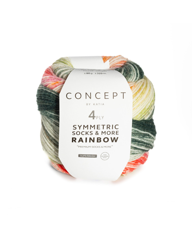 ¡Sumérgete en un mundo de color con Symmetric Rainbow de Concept by Katia! Este hilo para calcetines de la línea Premium Socks & More te permite tejer dos calcetines de rayas idénticos. Empieza a trabajar con el hilo interior del ovillo para una simetría perfecta y vestir tus pies de un arcoiris de colores perfecto. ¡Deja que tu creatividad brille más allá de los calcetines y crea obras únicas con Symmetric Rainbow de Concept by Katia!