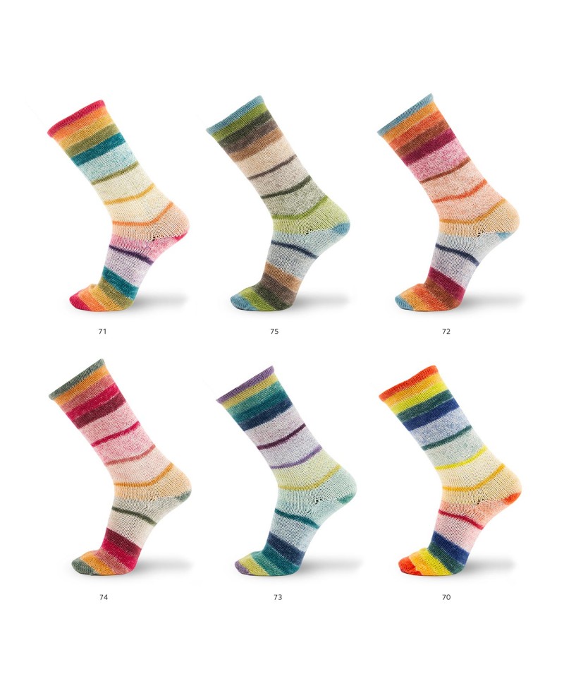 Añade color en tus zapatos con Concept Illusion Symmetric Socks & More, un innovador hilo de 4 cabos estampado en ciclo perfecto. Su divertido efecto cromático combina rayas marcadas con un degradado armonioso, ideal para tejer calcetines únicos. Además, con un solo ovillo, puedes tejer fácilmente un elegante cuello. Disfruta tejiendo accesorios vibrantes y llenos de estilo.