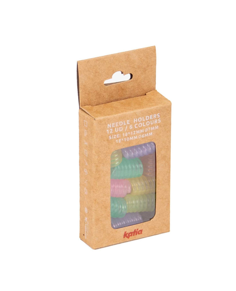 Este set contiene 12 espirales en 6 colores diferentes para sujetar y guardar juntas tus pares de agujas de punto. Son espirales que se adaptan a agujas de 2.0-5.0 mm (6 unidades) y agujas 4.5-6.5 mm (6 unidades) y sirven tanto para agujas rectas como circulares. Gracias a sus colores diferentes, a juego con el resto de accesorios Katia, ¡puedes identificarlas rápidamente!