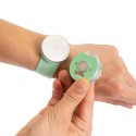 Ten a mano alfileres, marcapuntos metálicos o el cuentavueltas imantado, mientras coses o tejes gracias a esta pulsera con imán redondo de la colección de accesorios Katia 100% You. Coloca con un sencillo gesto la pulsera magnética sobre tu muñeca para que sus bandas se cierren automáticamente. Esta pulsera, compatible con el cuentavueltas, se presenta en una cajita craft cuadrada. Medidas: 23 cm x 2,5 cm y placa con imán de 4 cm de diámetro.