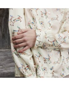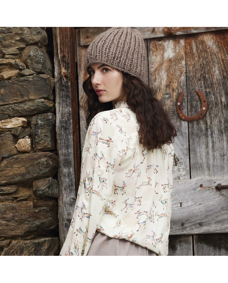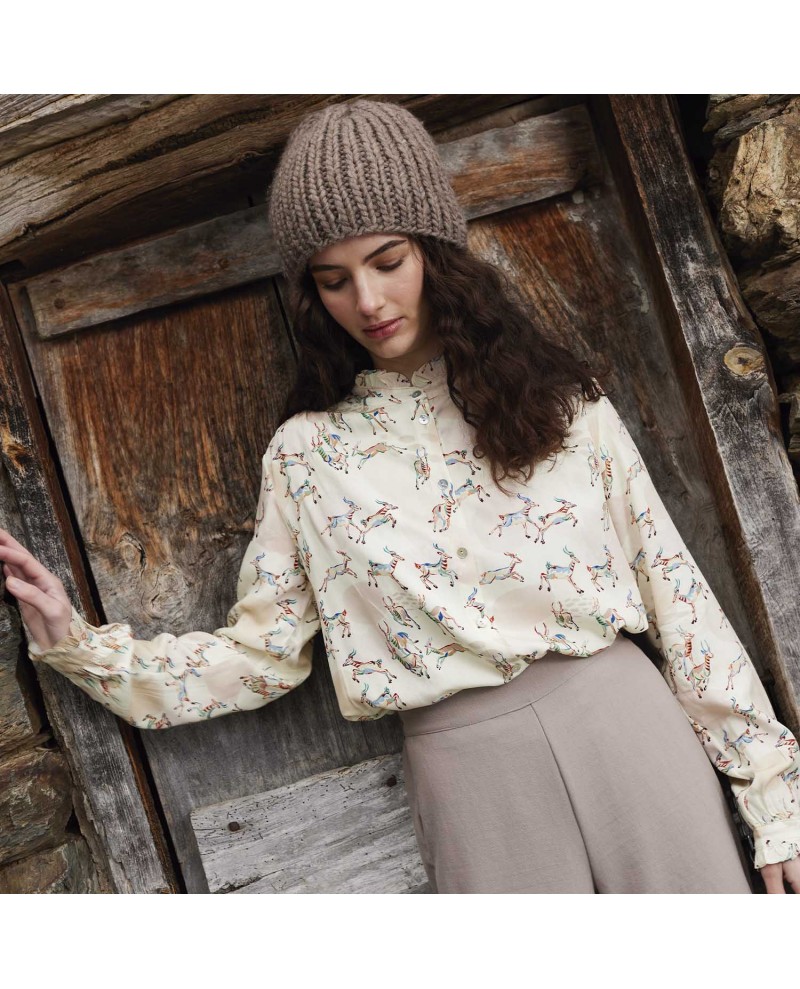 Tela 100% viscosa estampada con un diseño único que combina figuras de antílopes en movimiento y detalles abstractos. Ideal para confeccionar prendas ligeras y modernas como camisas, pantalones fluidos o tops desenfadados. Composición 100% Viscosa ; Ancho: 140 cm. Gramaje: 95 gr/mt2. Lavable a máquina 30º. No lejía. No secar en secadora. Planchar máx. 150º.