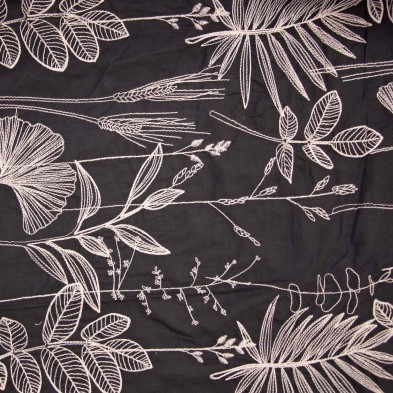 Descubre la belleza del contraste con la tela Embriodery Linen & Black, una tela voile de algodón con bordado beige sobre fondo negro, que aporta un aire sofisticado y versátil a cualquier prenda. Su diseño delicado y su ligereza la convierten en la elección perfecta para prendas fluidas como túnicas, blusas elegantes, vestidos ligeros y accesorios de moda.