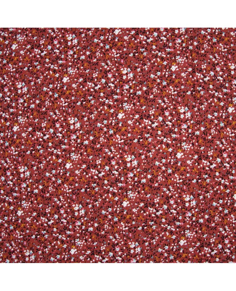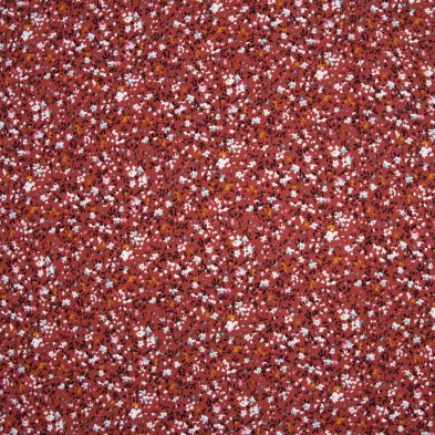 Tejido 100 % Viscosa con un bonito estampado floral sobre un fondo rojo. La tela de viscosa Viscose Print Sunset Flowers de Katia Fabrics tiene una caída espectacular, por tanto, es muy adecuada como tela para coser blusas, faldas largas y vestidos. Un tejido no elástico de gran suavidad que cautiva por su ligereza y delicadeza. Déjate sorprender por esta viscosa tan bonita y agradable a la piel de Katia Fabrics.