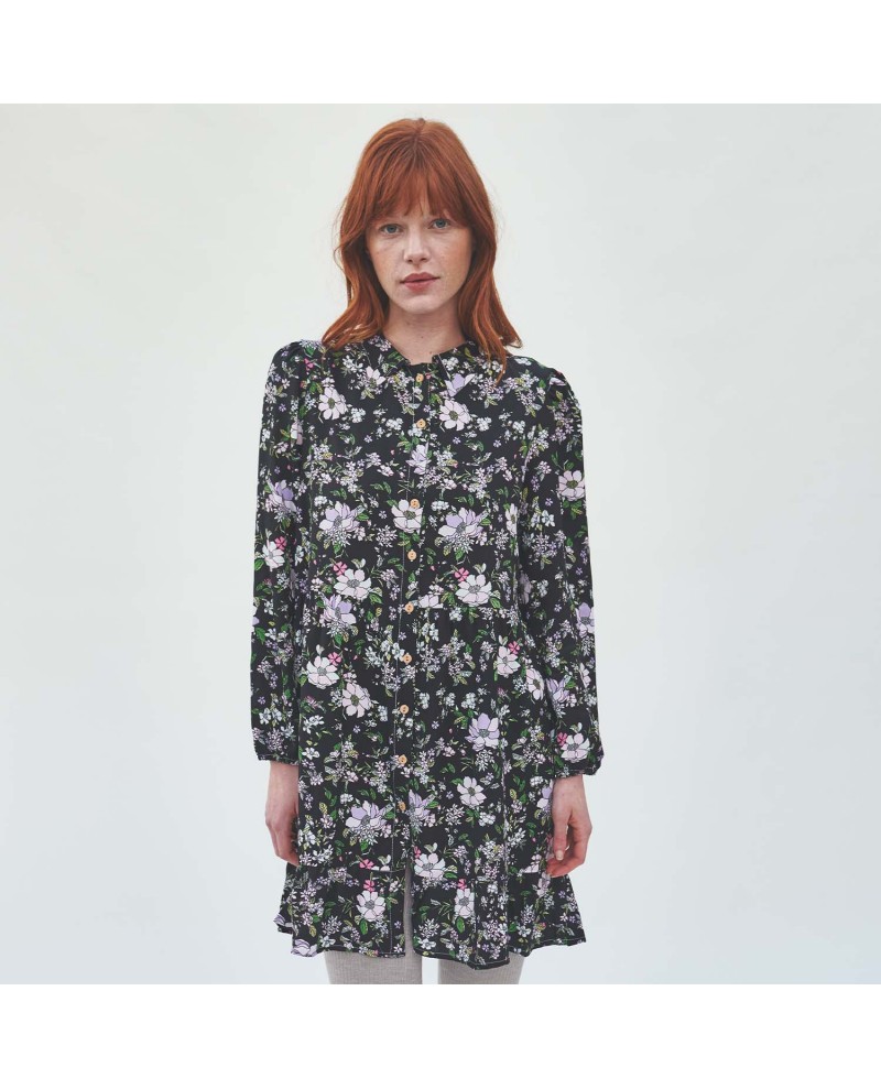 Tela de viscosa 100 % con un precioso estampado floral en tonos rosa pastel sobre un fondo negro. El tejido de viscosa Viscose Twill Pink Winter Flowers de Katia Fabrics gracias a su increíble textura, bonita caída y suavidad es perfecto para coser camisas de mujer, vestidos o faldas.