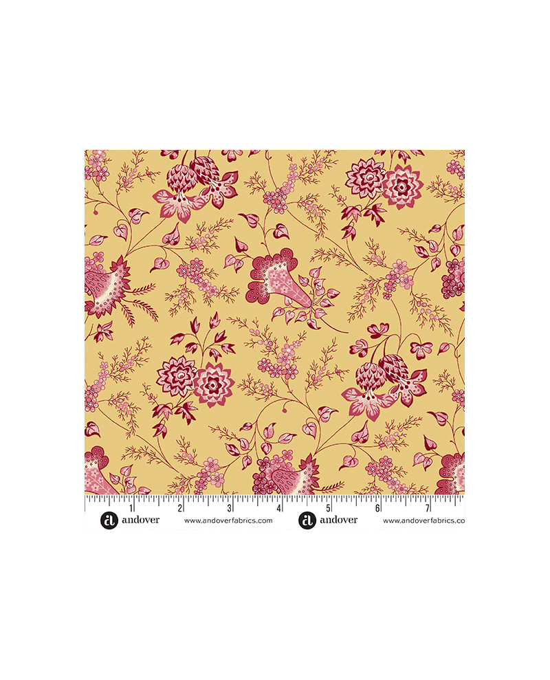 Tela de la colección Fernshaw por Max and Loise de Andover, tela de algodón 100% especial para su uso en proyectos de Patchwork. Tela con estampados de flores en colores amarillos y rosas. Estas telas son ideales para la realización de colchas, cojines, sábanas, cortinas.... Elige la medida deseada: entre ellas Fat Quarter: 50 cm x 55 cm o Fat eighth: 25 cm x 55 cm.