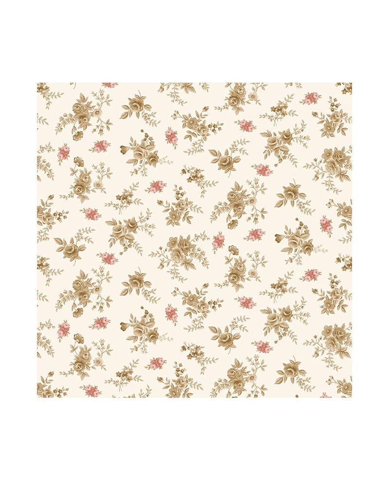 Tela para Trasera especial patchwork. Tela con diseño de flores sobre fondo crudo. 1 unidad de venta: 25 cm x el ancho.